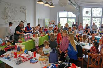 Den Hauptgewinn, einen 50-€-Gutschein von Spiel+Freizeit, stellt Malermeister Michael Kober und erntete viel Beifall und Begeisterung. Aber auch die restlichen Preise, z. B. Fahrradhelme, Barbies, Spiele, Playmobil und Tönchen-Taschen mit Kinogutscheinen, waren heiß begehrt.