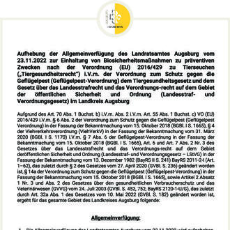 Aufhebung der Allgemeinverfügung des Landratsamtes Augsburg vom 23.11.2022