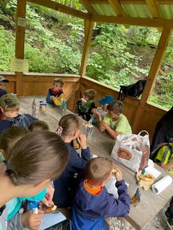 den Gablinger Wald machen. Mit vollem Eifer waren alle Kinder dabei. Nach Meisterung aller acht Aufgaben an den unterschiedlichsten Stationen konnten alle gemeinsam den Schatz an der Gablinger-Brettl Hütte heben. Dort erwartete uns auch Bürgermeisterin Karina Ruf mit einer Brotzeit und die Kinder spielten am Rosshimmel noch Fangspiele, bevor sie von ihren Eltern abgeholt wurden. Alles in allem war es ein gelungener Nachmittag, bei dem die Kinder spielend die wunderschöne