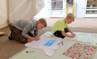 Ab Mittwoch beratschlagte sich jedes Team, welche Produkte (z.B. Kuchen, Cocktails) oder selbstgebastelte Artikel (z.B. Ketten, Schlüsselbrett) zum Abschlussfest verkauft werden sollen. Zudem wurden alle Bauwerke fertiggestellt und für die Gäste aufgeräumt. Am Donnerstagnachmittag war es dann so weit. Eltern, Geschwister oder Großeltern sind zur Stadtbesichtigung gekommen. Voller Stolz zeigten die Kinder ihre Meisterwerke und alle waren sichtlich erstaunt, wie viel die Kinder in den vier abwechslungsreichen Tagen geleistet haben. Eifrig verkauften sie in ihren Bauwerken Kuchen, Getränke, handwerkliche Artikel oder lackierten Fingernägel. Die Einnahmen in Höhe von erfreulichen 390 Euro wurden dem Bunten Kreis gespendet. Zur Überraschung kam am Ende der Abschlussfeier der Eismann vorbei und jedes Kind erhielt als Belohnung ein Eis.