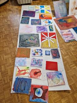 Marisa Zapatel begrüßte: die jungen Leute verteilten sich auf die Räume und Gänge und fertigten ganze Motivreihen auf den verschiedenen Leinwandformaten an, dabei unterstützte Marisa mit Tipps und Tricks. Da auch für das leibliche Wohl mit Kuchen und Pizza wohl gesorgt war konnten die Aktiven bis in die Nachmittagsstunden ihre Zeit mit viel Kunst vertreiben.