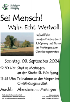 In Meitingen hat zu den äußerst schwierigen Zeiten der Nazi-Diktatur Max Josef Metzger gewirkt – für den Frieden, für die Ökumene, für eine Erneuerung der Kirche! Deshalb haben wir beschlossen, unsere jährliche Wallfahrt in diesem Jahr rund um Meitingen (10 km über Lech, Ostendorf, Nordfeldsiedlung) zu begehen, mit Impulsen aus dem Leben von Max Josef Metzger und mit Abschluss im Christkönigsinstitut.