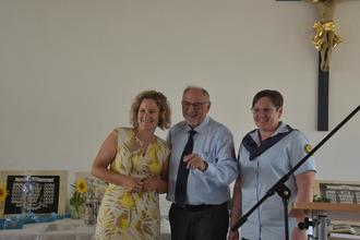 Vorstand S. Friedel, wunderhübsch eingerahmt von Marina Jakob, MdL und Silvia Müller, 1. Vors. Kameradschaft Lützelburg