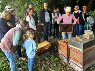 Station Zwei: Bienenhof Pausch in Unterpfaffenhofen. Der nächste Stopp führte zum Bienenhof Pausch, wo Einblicke in die Bienenhaltung gewährt wurden. Die Besucher erfuhren, wie Honig vom Bienenvolk ins Glas gelangt und welche Arbeitsschritte dabei eine Rolle spielen. Außerdem konnte die hofeigene Obstplantage besichtigt werden, und die Teilnehmer erhielten Einblicke in den Weg des Obstes über den Gärkeller bis hin zur Destillerie. Natürlich konnten die Produkte auch getestet werden und manch einer nahm gern einen guten Tropfen mit nach Hause.