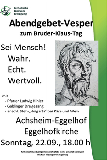 Kommenden Sonntag laden wir wie jedes Jahr zur Erinnerung an den Patron der KLB und den Friedensheiligen der Schweiz in die Eggelhofkirche ein – herzlich willkommen!!!