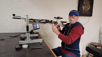 Im Luftdruckbereich hat Gablingen weit über den Gau hinaus einen hervorragenden Ruf. Lasergewehre und -pistolen für die Kleinen, Zimmerstutzen mehr als Gaudi, Klein- und Großkaliber, alles das ist bei den Grünholderschützen schon wohl bekannt. Jetzt kommen auch noch Aufgelegtschützen dazu. Vor Jahren vom Vorstand Erwin Baur noch etwas belächelt, sieht er mittlerweile gerade für ältere Schützen, die nicht mehr die ganz ruhige Hand haben oder vielleicht schon etwas wacklig auf den Beinen sind, damit die Möglichkeit, ihren Sport mit Begeisterung weiter zu betreiben. Die Disziplin boomt im Gau, der TSV Lützelburg macht es schon seit Jahren vor. Jetzt sind die Grünholderschützen nachgezogen. Eher durch Zufall. Rudolf Markuse, 70 Jahre alt und seit über 50 Jahren begeisterter Schütze hat bei den Gablingern zwecks Training angefragt. Luftdruck, Kleinkaliber, Großkaliber, Tontauben, all das schießt der erfahrene Sportler immer noch aktiv. Sein aktuellstes Steckenpferd aber ist seit über 10 Jahren das Aufgelegtschießen mit dem Luftgewehr. Ab einem Alter von 51 Jahren kann man stehend mitmachen, ein paar Jahre später dann auch im Sitzen. Wettkämpfe und Meisterschaften schießt Rudolf bei der Schützengesellschaft Fortuna Augsburg. Die haben aber nur Zugstände mit Papierscheiben, er wollte aber auch auf den sich immer weiter verbreitenden elektronischen Ständen trainieren. So hat er bei den Grünholderschützen angefragt und ist seit rund einem Jahr begeistertes Mitglied. Die Nähe zu seiner Heimat Lützelburg, aber auch die nette Kameradschaft im Verein hat ihn überzeugt. Überzeugt hat er aber auch schon den ersten Gablinger. Herbert Hörmann, Spitzname "Dixi", hat sich mittlerweile auch ein spezielles Gewehr und die Ausrüstung für diese Sportart besorgt und trainiert mittlerweile fleissig mit Rudolf, der sich auch mit den Techniken und Regeln hervorragend auskennt. Wer weiß, vielleicht kommt noch der Eine oder Andere dazu und es gibt irgendwann sogar eine Mannschaft im Rundenwettkampf.