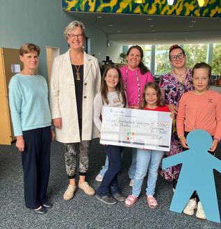 Am Schuljahresende konnte die Spende an Andrea Fleming vom Bunten Kreis übergeben werden, die den Schülerinnen und Schülern auch noch mehr über die Arbeit am Therapiezentrum Ziegelhof erzählen konnte.