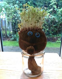 Aus alten Nylonstrümpfen, Erde und Marmeladengläsern wurden anschließend Kresseköpfe für zuhause kreiert.