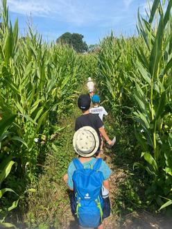 Zu allererst stürzten wir uns bei strahlendem Sonnenschein ins Maislabyrinth und versuchten, das wirklich knifflige Rätsel zu lösen.