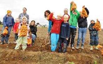Zu Beginn begrüßte Andrea Kratzer die Gruppe herzlich und vermittelte den Kindern auf anschauliche Weise viele interessante Informationen rund um die Kartoffel. Die jungen Teilnehmer erfuhren, wie Kartoffeln wachsen, welche Sorten es gibt und warum die Knolle ein so wertvolles Nahrungsmittel ist. Auch ein kleiner Geschichtsexkurs war mit dabei.
