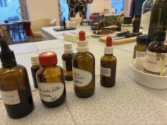 Bereits zu Beginn durften die Teilnehmer den sogenannten Herzwein nach einem überlieferten Rezept von Hildegard von Bingen verkosten – ein aromatischer Einstieg in den Abend. Im weiteren Verlauf wurden verschiedene Möglichkeiten der Haltbarmachung vorgestellt: Vom klassischen Trocknen über die Verarbeitung mit Öl, Alkohol, Essig oder Zucker. Besonders interessant waren die Informationen zu Schlehe, Weißdorn, Löwenzahn, Johanniskraut, Ringelblume, Brennessel, Spitzwegerich und Rosskastanie. Begleitend zum Vortrag gab es immer wieder die Gelegenheit, selbst hergestellte Produkte zu probieren.