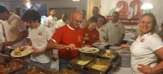 Dani Tausend bei der Essensausgabe am reichhaltigen Buffett