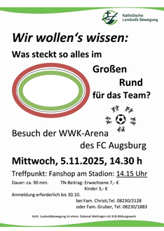 Unser Jahresthema: Zusammen.Halt! Da haben wir gedacht, wir schauen uns mal an, was so alles an Voraussetzungen geboten werden und aufgewendet wird, dass so ein Profi-Team wie das des FCA-Augsburg und die Fans Zusammenhalt schaffen und erleben. Herzliche Einladung dabei zu sein!