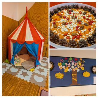 Am 10.10.2025 fand unser Herbstfest statt. Die Gruppe hat im Vorfeld fleißig Kastanien, Eicheln und Blätter gesammelt. So entstanden großartige neue Sensorik Wannen zum Spielen, Fühlen und Erleben. Wir waren mit neun Mamas und zwei Papas richtig gut besucht. Es gab selbstgemachte Waffeln und einen herbstlichen Kuchen, etwas zum Basteln und viel zum Entdecken, unter anderem unsere neue Kuschelecke. Wir bedanken uns für die zahlreiche Teilnahme, Hilfe und auch für die Spielzeug/Sachspenden vom Umkreis.