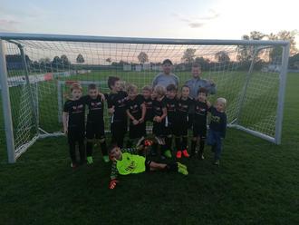 Noah H., Jack, Johannes, Ludwig, Noah B., Paul, Leo, Fabian, Maximilian, Maskottchen Samuel, Manuel (vorn) mit Trainern Andreas und Matthias
