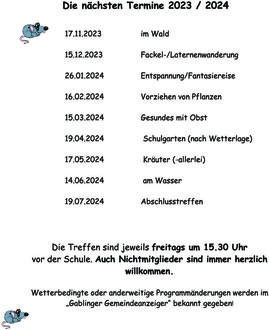Falls das Wetter zu schlecht ist, werden wir in die Schule zum Basteln gehen.