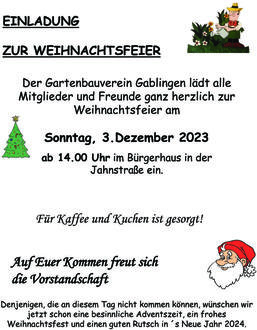 Am 1. und 2. Dezember 2023 beteiligt sich der Gartenbauverein Gablingen wieder an der Dorfweihnacht auf dem Pf.-Ledermann-Platz.