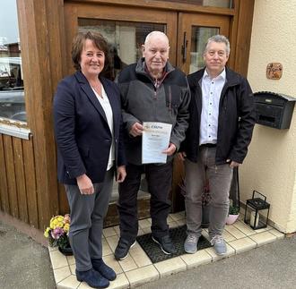 Bürgermeisterin Karina Ruf und der Vorsitzende des CSU-Ortsverbandes Jürgen Köhn gratulierten Xaver Jäger persönlich zu 50 Jahren CSU-Mitgliedschaft und durften die Ehrenurkunde und Ehrennadel mit 5 Sternen übergeben.
