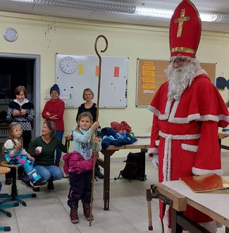 Angekommen in der Schule wartete bereits der Nikolaus auf die Wühlmäuse. Jedes Kind bekam eine Tüte mit gesunden Sachen und einen handgemachten Schneemann aus Pfeffernüssen und Keksen. Zum Abschluss sangen alle gemeinsam einige bekannte Weihnachtslieder.
