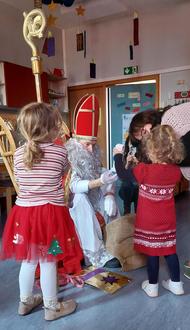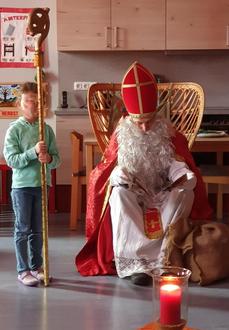Ein einstudiertes Nikolausgedicht wurde voller Begeisterung vorgetragen und in Begleitung einer Gitarre sangen die Kinder freudig für den Nikolaus.