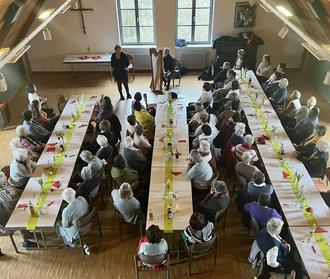 So trafen sich am 29. Januar 2023 vormittags rund 60 Frauen zum Weißwurstfrühstück im Pfarrheim Gablingen. Dazu gab es leckere vegetarische Aufstriche.