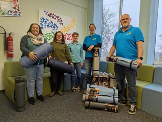Diese Mattenspenden wurden nun vom Team der „Bunten Pause“ und vom Förderverein für Kinder und Jugendliche der Gemeinde Gablingen e.V. aufgestockt, so dass wir nun 30 Yogamatten und 30 Fitnessmatten besitzen.