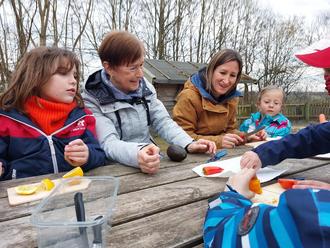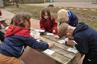 Eine ganz tolle Idee von Nadine Lindermeir war das Fertigen von Samenbändern aus Toilettenpapier. Hierbei wurde aus Mehl und Wasser ein Klebstoff hergestellt. Mit einem Holzstäbchen wurden kleine Punkte auf das Toilettenpapier getupft und darauf die Samen gelegt.