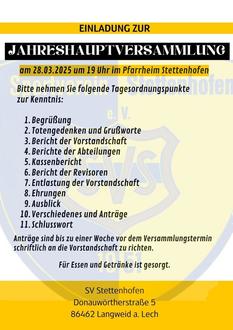 SV Stettenhofen - Einladung zur Jahreshauptversammlung
