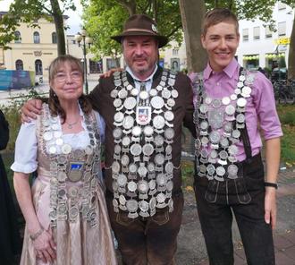 Ihre Regentschaft neigt sich dem Ende zu. Schützenkönig Poldi mit Liesl Birgit und Jugendkönig Johannes beim Plärrerumzug