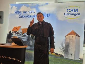 Anschließend stellten sich die talentierten Gemeinderatskandidaten vor. Übrigens die jüngste Liste in unserer Gemeinde. Nach einer Musikeinlage der Blaskapelle Gablingen folgte die lang erwartete Fastenpredigt von Bruder Barnabas, bei der keine Gruppierung verschont blieb. Die Gäste hatten sichtlich Freude daran, bevor der Abend gemütlich ausklang. Ein herzlicher Dank gilt unserem gesamten Team, besonders Tanja Lederle für die Organisation, Klaus-Dieter Bittner für einen Teil der Speisen, dem Musikverein Gablingen sowie Alexander Baur als Fastenprediger.
