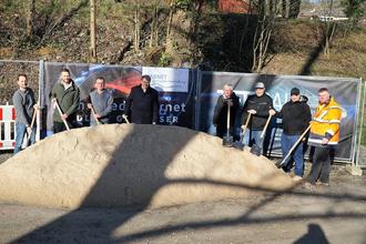 v.l.: Andreas Becker (HABNET), Johannes Schmelz (VG), 2. Bgm. Jürgen Brönner, 1. Bgm. Johannes Wagenpfahl (Gemeinde Gräfendorf), 1. Bgm. Martin Göbel (Gemeinde Karsbach), Andreas Mehling (HABNET), Benjamin Risch (Fa. TFE), Maurice Klos (Fa. TFE)