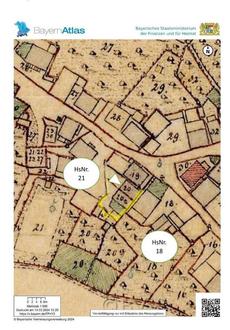 Das Haus des Tagelöhners Johann Adam Haas lag zwischen dem Haus Nr. 20, das einen Keller, Hofraum und 0,240 Tagewerk (rund 800 qm) hatte, und dem Wohnhaus Nr. 20a des Schneiders Andreas Weigand und seiner Frau Dorothea Weigand mit Stall, Hofraum und einem kleinen Gewürzgarten. Hier standen nur 0,114 Tagewerk (rund 400 qm) für die Familie zur Verfügung.