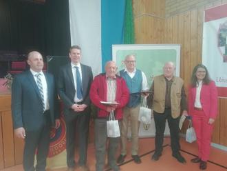 Anlässlich des Feldgeschworenentages des Altlandkreises Gemünden in Gräfendorf wurden verdiente Feldgeschworene für ihre langjährige Dienstzeit ausgezeichnet. Aus der Gemeinde Karsbach wurden Herr Manfred Fichtner und Herr Bernd Kern aus Höllrich für 25 Jahre ehrenamtliche Feldgeschworenentätigkeit von der Landrätin Frau Sabine Sitter und dem Amtsleiter für Digitalisierung, Breitband und Vermessung, Herrn Steffen Händler geehrt.