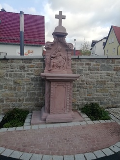 Die Restaurierung und Umsetzung des Gössenheimer Prozessionsaltars D-6-77-132-3 von der Hauptstraße 18 mit Fl.-Nr. 173/9 in die Bäckergasse Fl.-Nr. 173/10 ist nun durch den Natursteinbetrieb Dittmeier aus Wernfeld abgeschlossen worden. Stolz sind wir, dass für diese Maßnahme von der unterfränkischen Kulturstiftung des Bezirks Unterfranken ein Zuschuss in Höhe von 1.852,00 € gewährt wird. An dieser Stelle ergeht ein