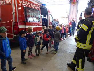 Die Kinder des Kindergartens St. Sebastian besuchten die Feuerwehr in Gräfendorf. Gleich zu Anfang stellte jedes Vorschulkind eine Frage, die sie im Kindergarten erarbeitet hatten. Danach besichtigten alle Kinder die Feuerwehrautos. Hier erklärten Benedikt Steigerwald, Jan Friedrich und Steffen Müller die vielen Geräte zur Brandbekämpfung. Einige davon durften die Kinder auch mal in die Hand nehmen, um zu merken, wie schwer so manches Gerät von der Feuerwehr ist.