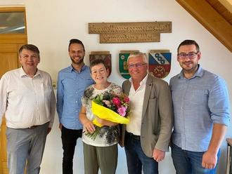 Bild: Jasmin Heim (von links: 1. Bürgermeister Herr Johannes Wagenpfahl, Geschäftsstellenleiter Herr Johannes Schmelz, Frau Rosemarie Wittstadt, Gemeinschaftsvorsitzender und 1. Bürgermeister Herr Martin Göbel, Personalrat Herr Benedikt Steigerwald)