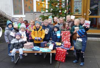 Auf dem Gelände des Kindergartens stand während der Adventszeit ein besonderer Weihnachtsbaum. Er war mit den Spielzeugwünschen der Kinder geschmückt. Alle Eltern, Omas, Opas, Tanten, Onkel und Paten konnten sich einen Wunsch vom Baum nehmen und dieses „Geschenk“ besorgen. Weihnachtlich verpackt wurde es im Kindergarten abgeben und hierfür durfte derjenige eine Weihnachtskugel an den Baum hängen. Am 23.12. packten die Kinder während der Weihnachtsfeier die Geschenke aus. Die Freude darüber war sehr groß. Vielen herzlichen Dank an alle, die an dieser tollen Aktion teilgenommen haben.