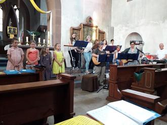 Die Gruppe „Kreuz & Quer“ bestach durch klangvolle Chorsätze und frische Rhythmik. Beim Lied „We shall overcome“, dem klassischen musikalischen Protest gegen jede Art von Missständen, waren Trauer, Mut und Hoffnung gleichermaßen spürbar. "Wir gehen Hand in Hand. Wir werden eines Tages in Frieden leben", drückte das Lied von Joan Baez aus. Hier überzeugte Johanna Rauch mit ihrem gefühlvollen Sologesang. Pastoralassistentin Lara Bruck bedankte sich herzlich für den anregenden spirituellen Sonntagabendausklang bei „Kreuz & Quer & Kids“ und dem Publikum, das sich 2 Zugaben erklatschte.