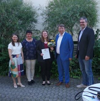 Frau Hörnis hat Ihre zweijährige duale Ausbildung zur Verkäuferin mit einem Notenschnitt von 1,1 abgeschlossen. Dafür erhielt Sie in einer Feierstunde an der Staatlichen Berufsschule Karlstadt als Klassenbeste von Frau Landrätin Sabine Sitter den Schulpreis und eine Urkunde der Regierung von Unterfranken überreicht, in der für den hervorragenden Abschluss der Berufsschule die besondere Anerkennung durch den Regierungspräsidenten ausgesprochen wird. Über dieses gute Ergebnis freuen sich auch ihre Ausbilderin Katrin Roloff, der Betreuer der IHK Oliver Proske und Bürgermeister Wagenpfahl.