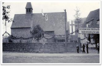 Bewölkter Himmel, so der historische Wetterbericht, aber Freude im Herzen, so der Artikel im Gemündener Anzeiger, zwei Tage nach der Weihe der St. Michaelskirche. Die evangelisch-lutherische Kirchengemeinde hatte eingeladen zum Weihefest für Sonntag, den 12. Oktober 1952. Das Gotteshaus war fertiggestellt und festlich geschmückt. Die Fahnen wurden von den Frauen des Ortes selbst aus Nesselstoff genäht, die Girlanden in Gemeinschaftsarbeit aus Tannenzweigen gefertigt. Die Buchstaben über dem Altar und am Grundstückseingang sind aus Pappe ausgeschnitten und mit schwarzem Glanzpapier bezogen und auf Nesselstoff aufgenäht. Das Dorf hatte ebenfalls sein Festtagsgewand angezogen. Pünktlich um 14 Uhr verkündeten die Glocken der katholischen Schutzengelkirche die Ankunft von Oberkirchenrat Koch. Dieser erbat den Segen für das neue Gotteshaus.
