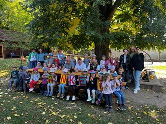 Im Mai haben unsere fleißigen Kindergarten Kinder zusammen mit Lorenz Höfler im Hof des Kindergartens ein Hochbeet mit Kartoffeln aufgestellt und bepflanzt. Den Sommer über konnten sie so beobachten wie ihre eingesetzten "Grumbieren" zu grünen Kartoffelpflanzen herangewachsen sind. Jetzt Ende September sind zahlreiche neue Kartoffeln zum Vorschein gekommen. Letzte Woche wurden sie nun geerntet und direkt zu Kartoffelbrei verarbeitet. Den haben sich die Kinder nach so einem Einsatz redlich verdient. An dieser Stelle noch einmal ein großes Dankeschön an Lorenz Höfler, der dies so schön mit den Kindern umgesetzt hat.