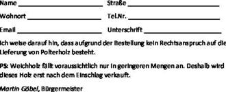 Bestellschein bitte an die Verwaltungsgemeinschaft Gemünden senden: