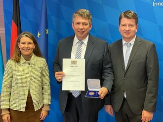 Innenstaatssekretär Sandro Kirchner überreichte im Namen des Bayerischen Staatsminister des Innern, für Sport und Integration, Joachim Herrmann, die Urkunde und Medaille im Rahmen einer Feierstunde am 20. Oktober 2022 in den Mainfrankensälen in Veitshöchheim. Er würdigte den Geehrten als Persönlichkeit des kommunalen Lebens, „der sich in besonderem Maße um die kommunale Selbstverwaltung verdient gemacht hat“.