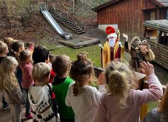 Auch dieses Jahr kam am 06.12. der Nikolaus mit seinem Gehilfen zu Besuch in den Kindergarten Karsbach. Die beiden lauschten den Liedern der Kinder und verbreiteten weihnachtliche Stimmung. Die verteilten Süßigkeiten wurden mit großen Augen dankend entgegen genommen.