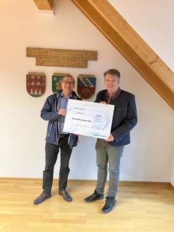 Eine Spende in Höhe von 1.000 Euro übergab Frank Schneider an Ersten Bürgermeister Johannes Wagenpfahl. Dieses Geld soll bei der Anschaffung der neuen Bestuhlung für den Kindergarten verwendet werden.