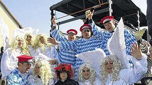Weiß-Blau: Unter dem Motto „Ein Münchner im Himmel“ trat der Wilde Haufen beim Faschingszug 2011 an.