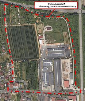 Aufgrund des Stadtratsbeschlusses vom 27.10.2025 wird die förmliche Beteiligung der Öffentlichkeit nach § 3 Abs. 2 BauGB sowie der Behörden und sonstigen Träger öffentlicher Belange nach § 4 Abs. 2 BauGB mit der Auslegung des überarbeiteten und gebilligten Bebauungsplanentwurfs „Steinäcker-Weizenäcker, 7. Änderung“ und dessen Begründung, jeweils in der Fassung vom 17.10.2025, die Immissionsschutzprognose (Y0210.011.01.001 v. 28.11.2023), den Umweltbericht mit integrierter Grünordnung und saP (in der Fassung vom 20.10.2025) sowie den Grünordnungsplan in der Fassung vom 18.10.2021, in der Zeit