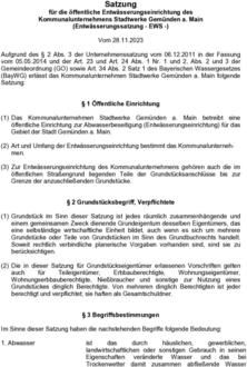 (1) Das Kommunalunternehmen Stadtwerke Gemünden a. Main betreibt eine öffentliche Einrichtung zur Abwasserbeseitigung (Entwässerungseinrichtung) für das Gebiet der Stadt Gemünden a. Main.