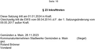 Gleichzeitig tritt die EWS vom 08.04.2014 i.d.F. der 1. Satzungsänderung vom 09.05.2017 außer Kraft.
