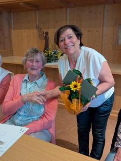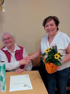 Maria Blasi gratulierte den langjährigen Mitliedern, hier stellvertretend abgebildet Maria Altheimer und Thea Kirchmaier